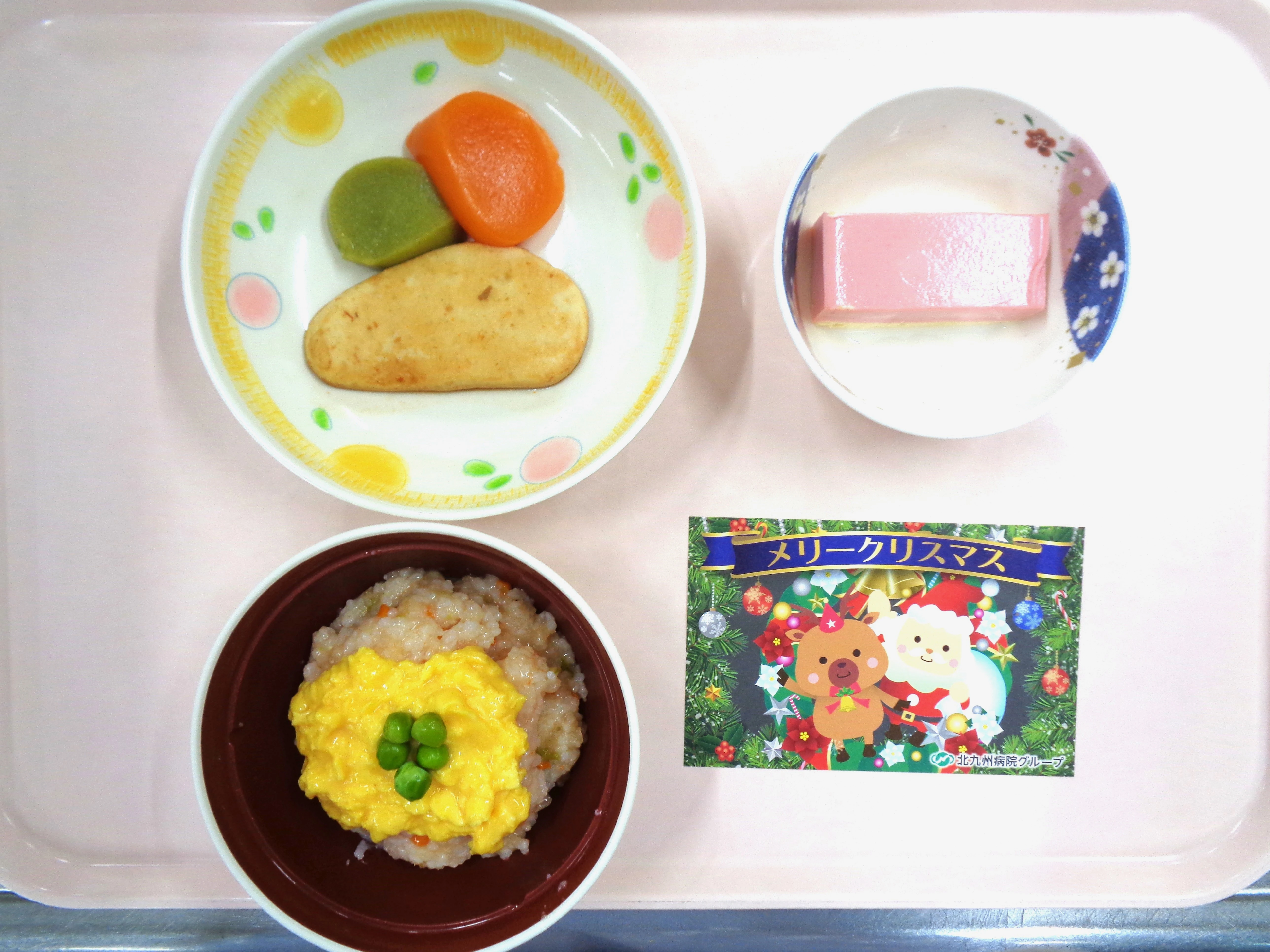 【常食】【粥ケア食】 ・オムライス風 ・煮込みハンバーグ ・クリスマスケーキ